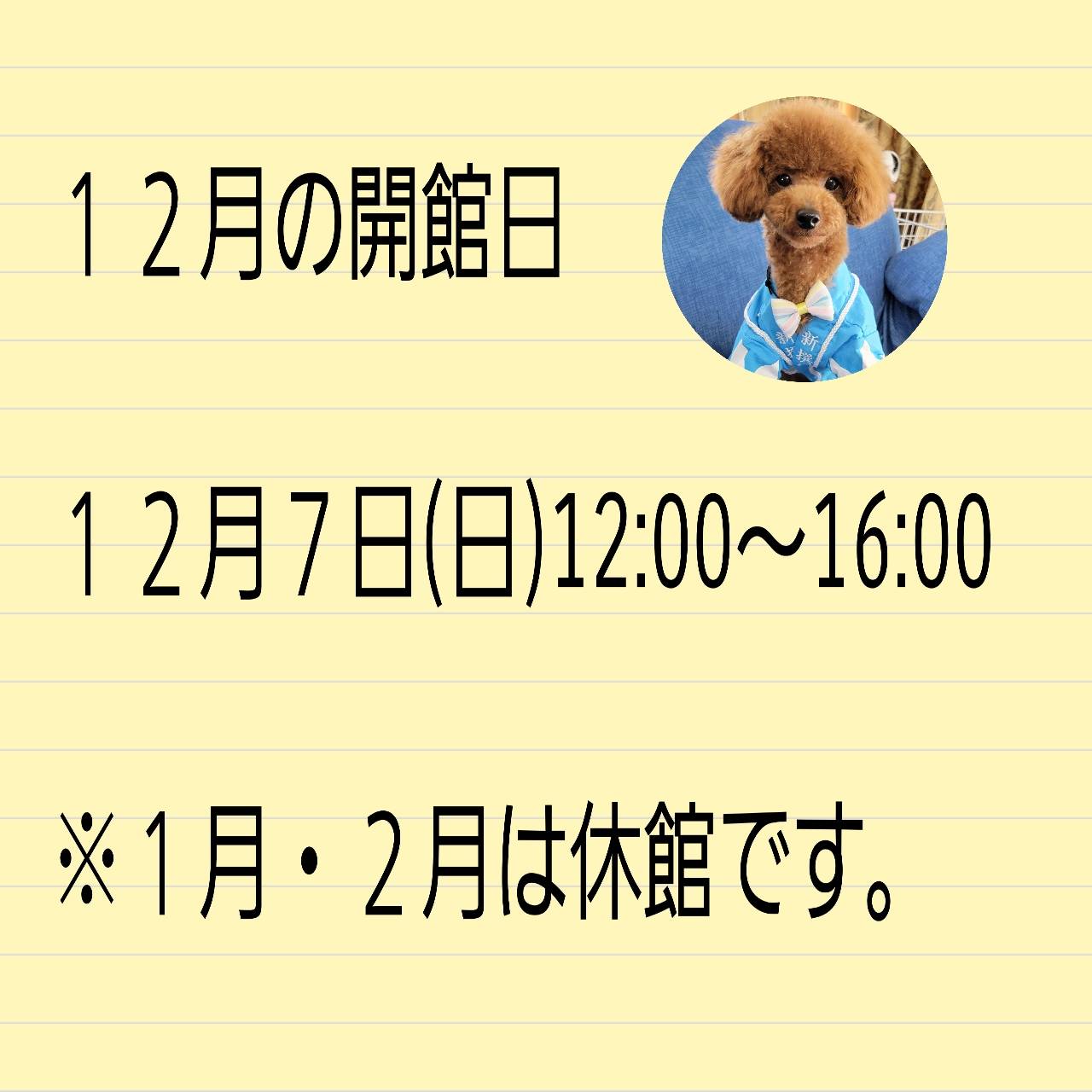 【今後の開館日のお知らせ】12月7日(日)12時~16時※第3日曜日は、休館